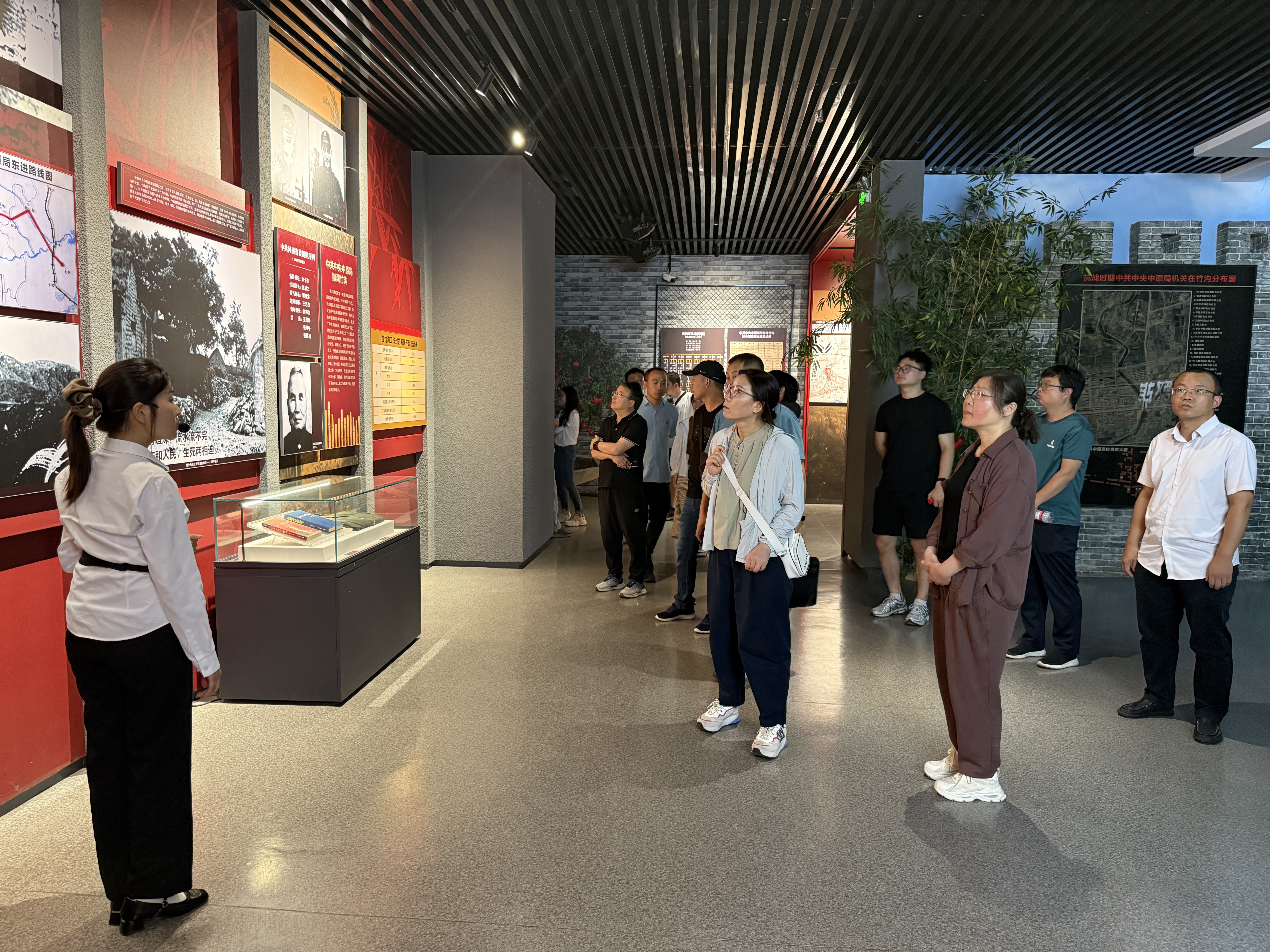 竹沟革命纪念馆筹建于1956年,1958年开馆,由周恩来总理题写馆名,是我国最早的革命纪念馆之一。在讲解员的带领下,党员同志们参观了历史照片、书信手稿等革命文物,认真听取了纪念馆成立经过、斗争历史等史实介绍,了解了刘少奇、彭雪枫等老一辈无产阶级革命家的艰苦抗战历程,瞻仰了中共中央中原局、豫鄂边军事会议等革命旧址,感受了革命先辈们不屈不挠、不怕牺牲、勇往直前、无私奉献的革命精神。