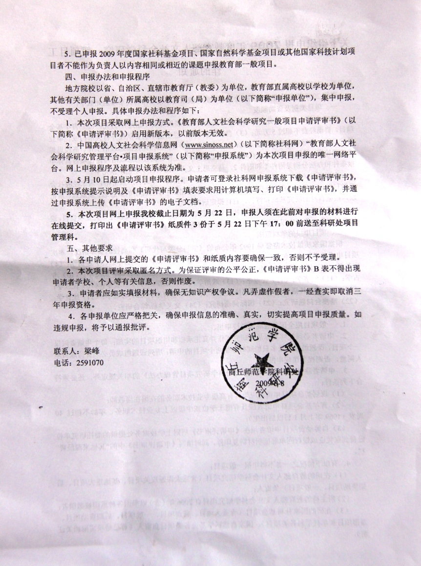 上一条:关于组织登记2008—2009学年度基本科研工作量的通知 下一条:商丘师范学院第三届科研工作会议环境与规划系分会场会议顺利召开