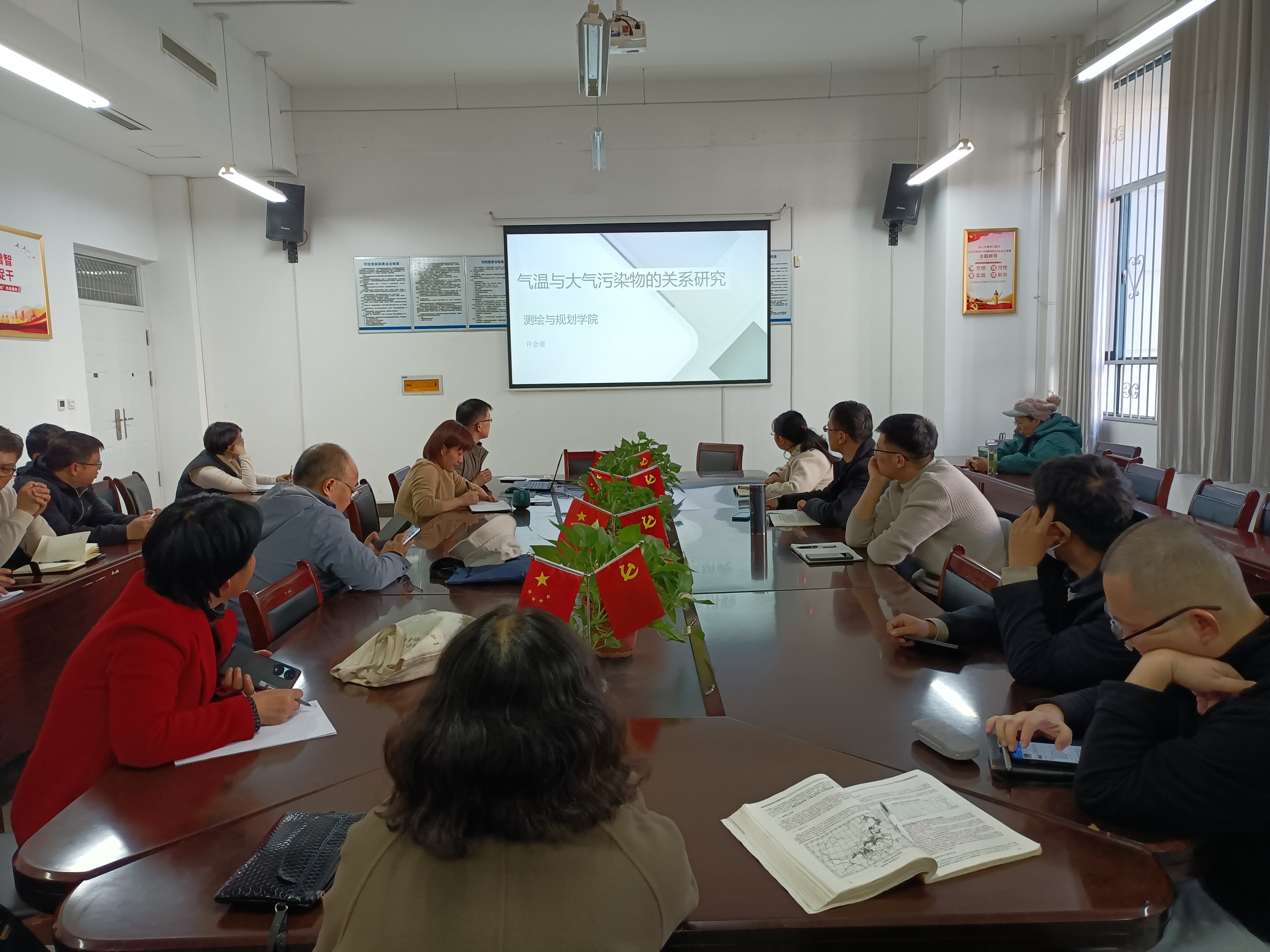 许会道博士主要介绍了大气污染物的变化对气温变化的影响,通过相关性分析和因子分析得到了初步的影响模型,并就接下来的研究工作做了展望。邢会敏博士汇报了关于LESS辐射传输模型的最新研究概况,分析了现阶段研究存在的问题及后续研究计划。李伟博士在整理文献的基础上,介绍了从时间维度和空间维度观测中国高温热浪发生时间和空间范围的新视角,并分享了接下来的研究计划。