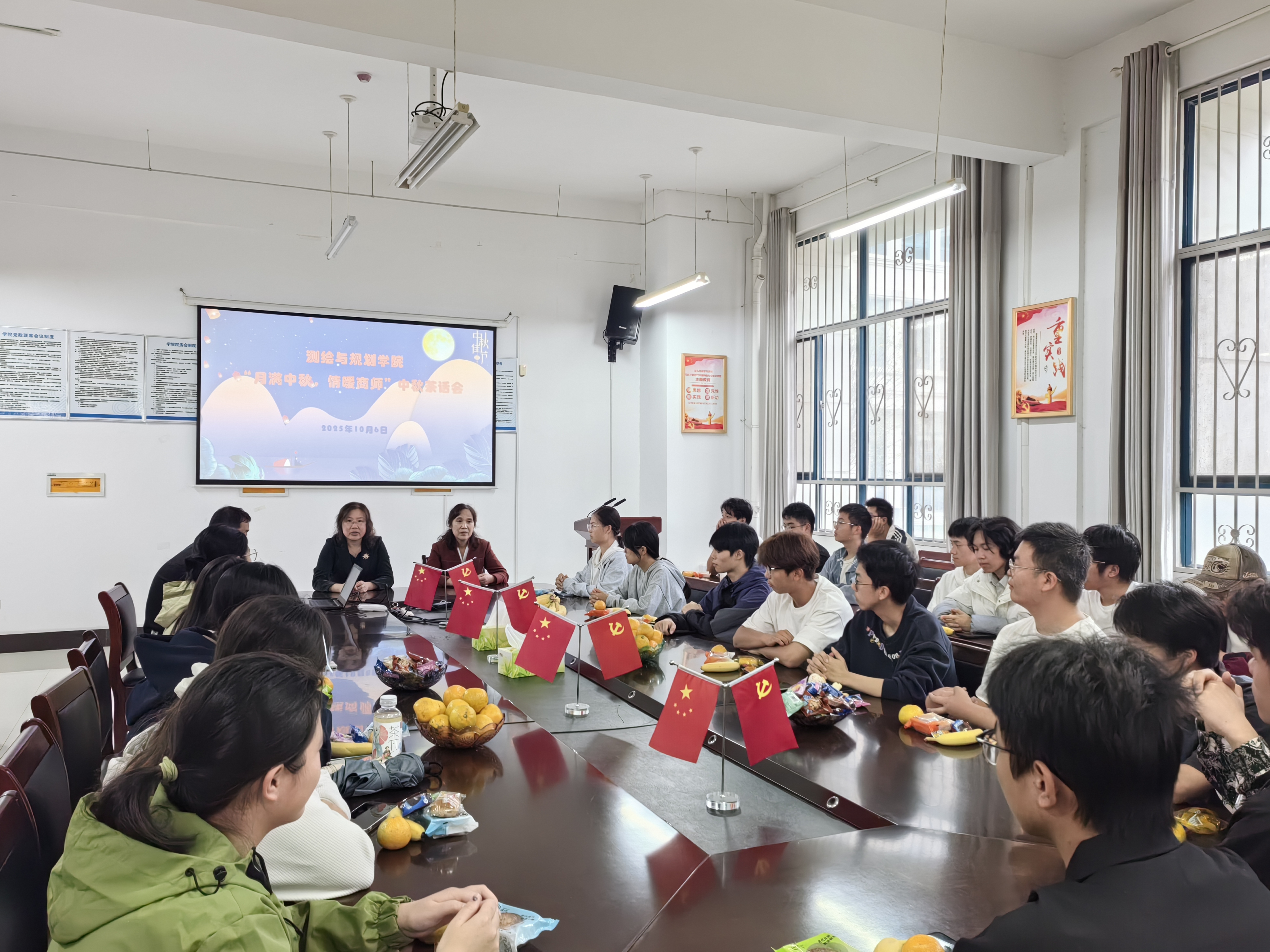 10月6日,国产又黄又大又粗的视频于三商楼134会议室举办“月满中秋,情暖商师”中秋茶话会。学院党委书记路利、党委副书记王丽、党政办主任魏理、学工办副主任兼2025级辅导员苏婉月及2025级留校新生欢聚一堂,共庆中秋,共话成长。