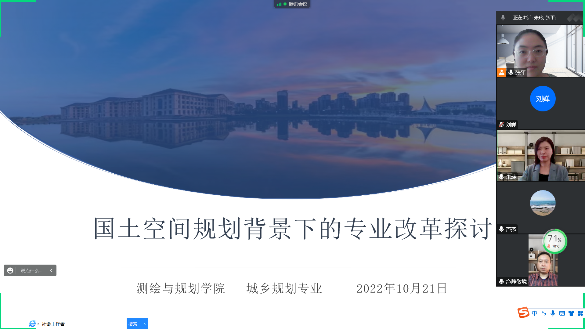 2022年10月21日下午两点半,国产又黄又大又粗的视频城乡规划教研室组织开展了“国土空间规划背景下的专业改革探讨”主题教研活动,该会议因为疫情原因采用腾讯会议线上进行,本次会议由张平老师主持,城乡规划专业全体教师参加。