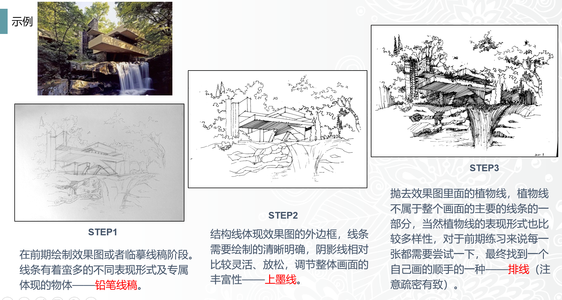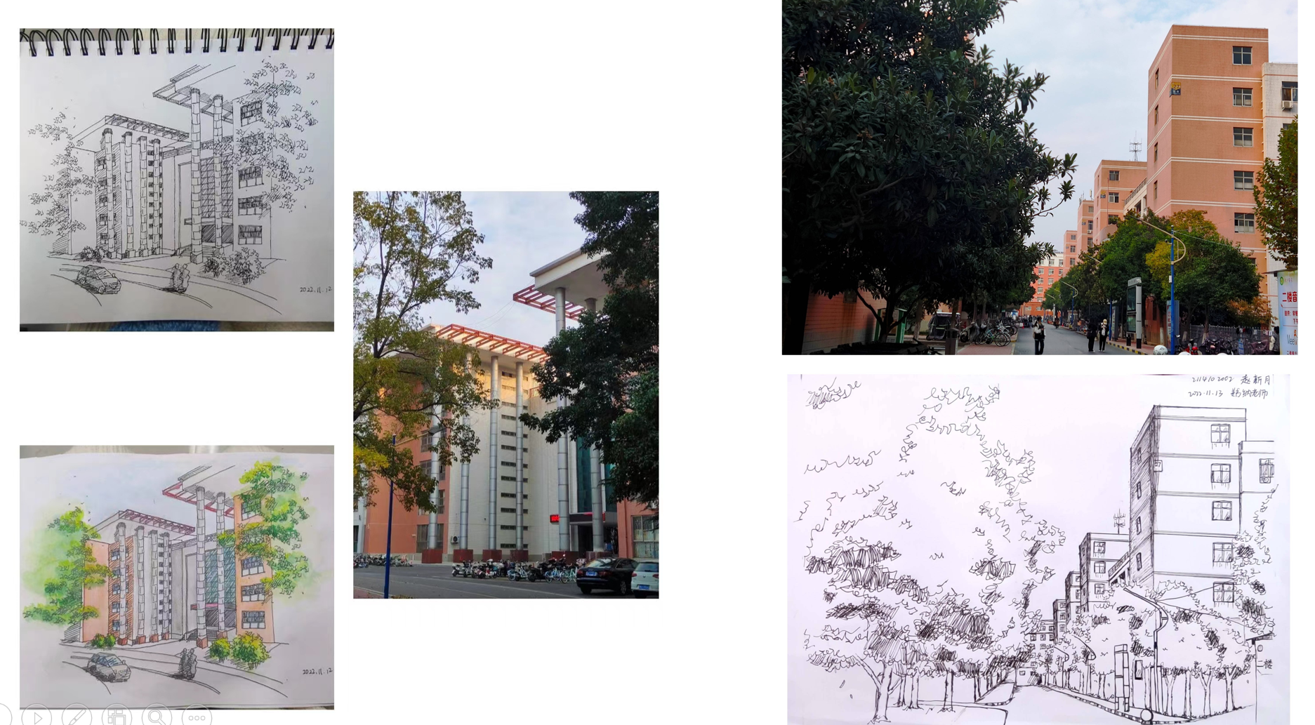 首先,姜书纳老师以城乡规划专业2021级《钢笔画》课程为例,从教学背景、教学设计、教学过程等方面进行分享。并以商丘师范学院校园风景写生为例,从“取景”、“构图”、“明暗关系处理”等分享了部分学生的钢笔画作品。从钢笔画写生“取”与“舍”角度展示了城规21部分学生的钢笔画作品,总结出在钢笔画写生过程中懂得取舍的重要性。同时分享自己钢笔画临摹作品,通过对比分析法让学生掌握在临摹中透视和布局的重要意义。